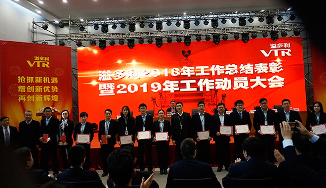 1月18日上午,溢多利集團2018年工作總結暨2019年工作動員大會在總部會議中心隆重舉行,一批優秀子公司、優秀集體和個人榮獲表彰。當晚,《新進》主題春晚精彩薈萃,歡聲笑語鬧不停!2019,溢多利人將在四大業務板塊持續發力,搶抓新機遇,增創新優勢,再創新輝煌!